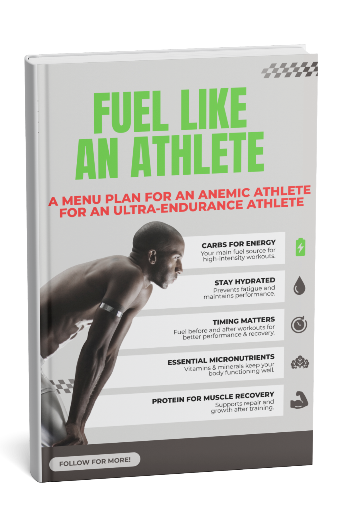 To prepare a menu plan for an anemic athlete for an ultra-endurance athlete during the competition phase of training.
